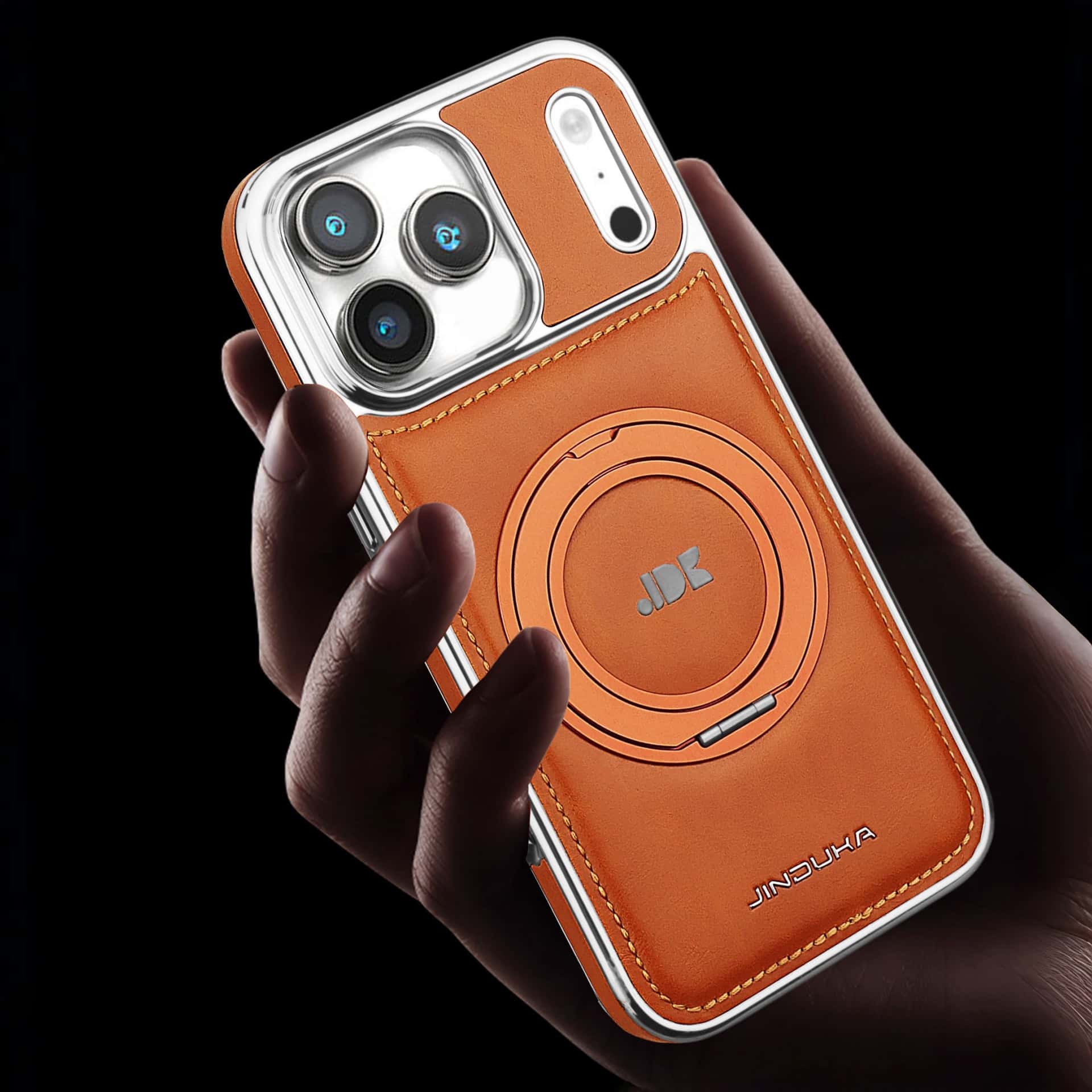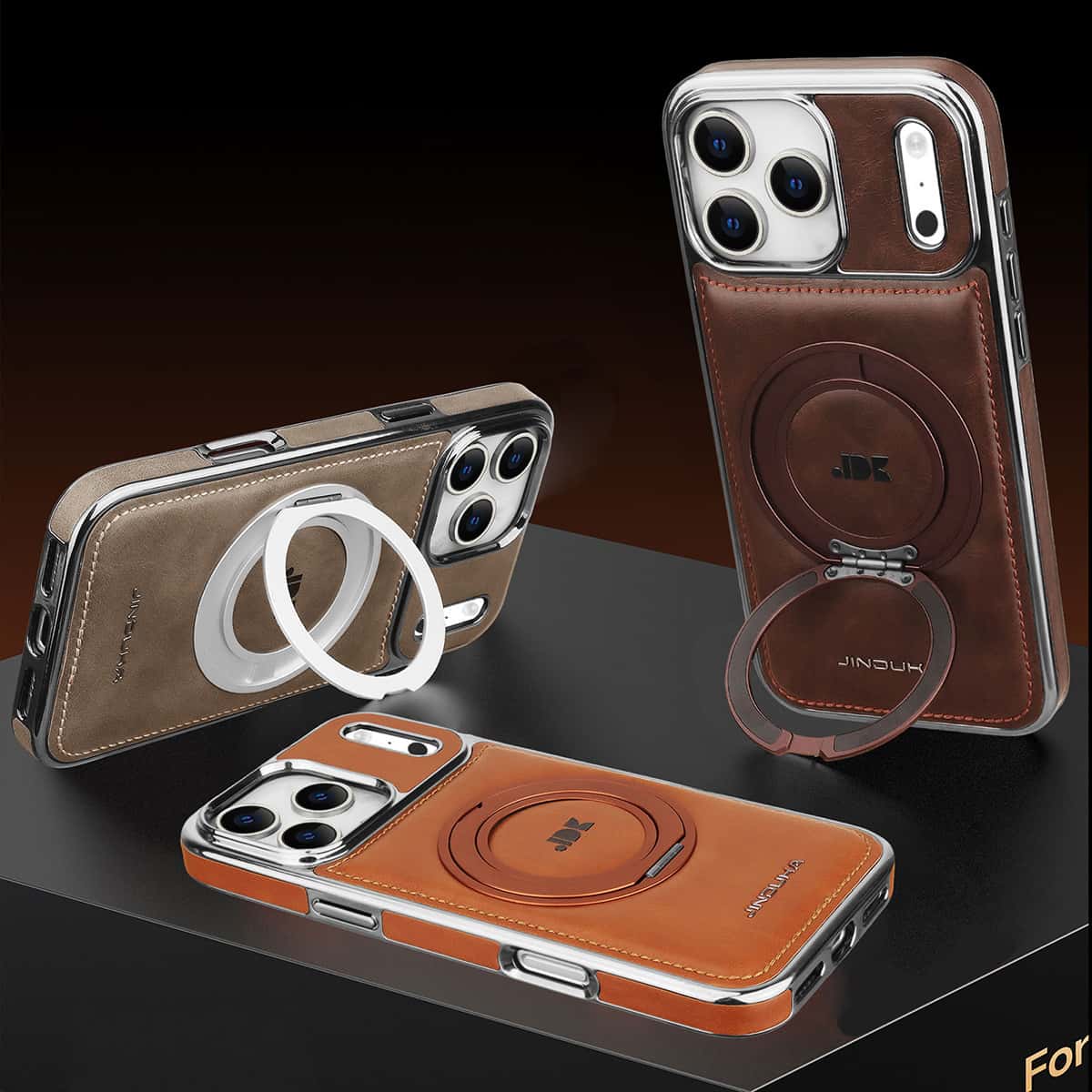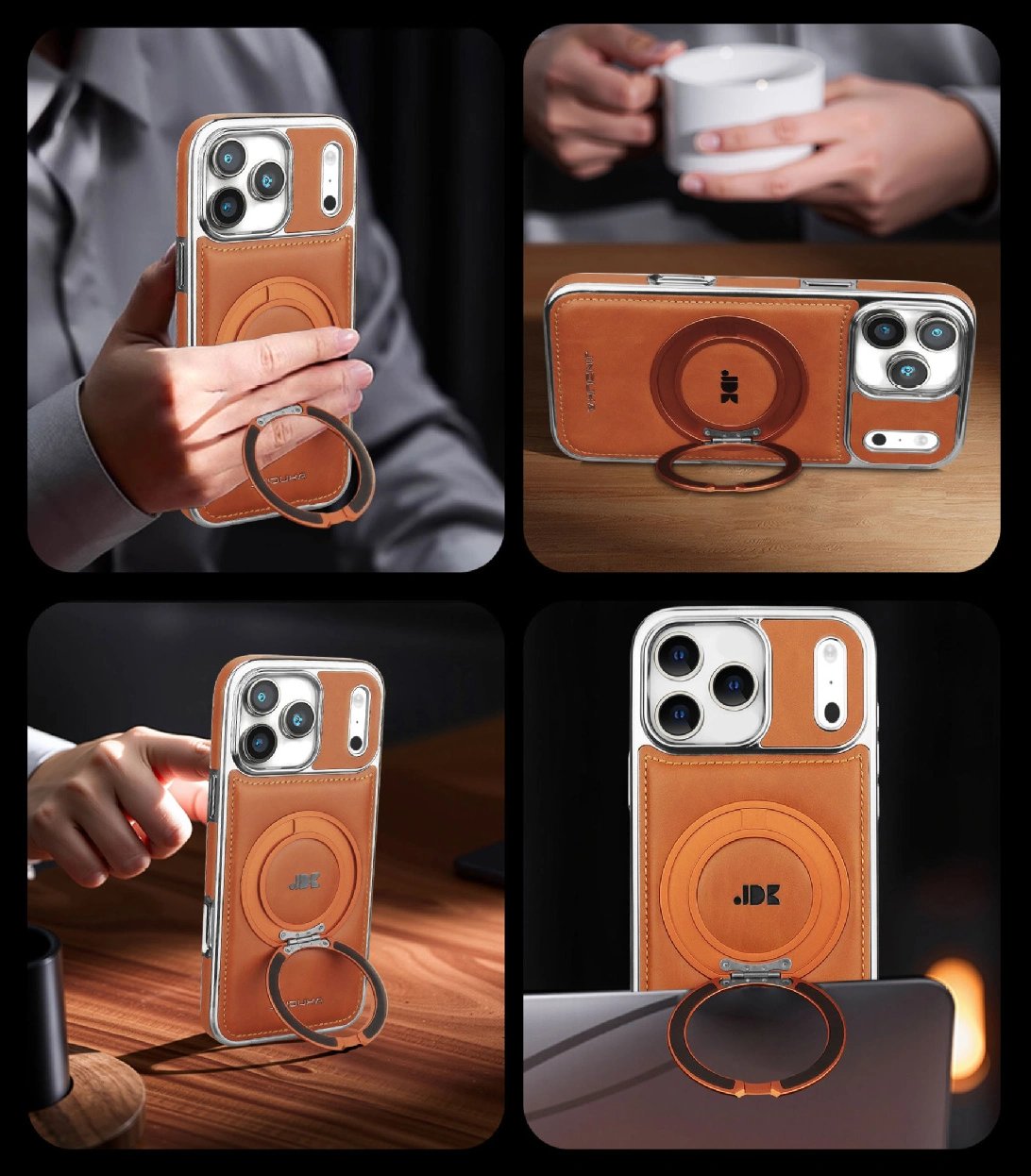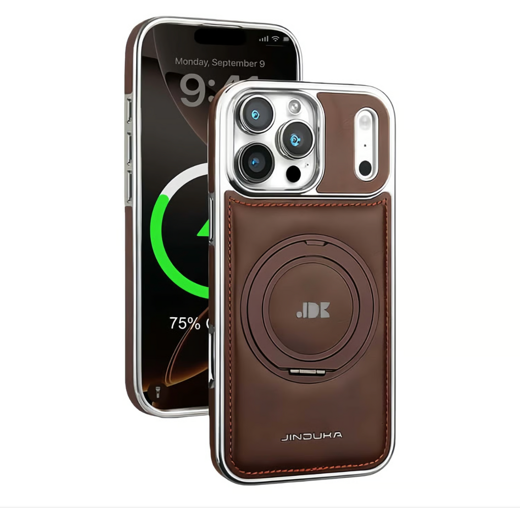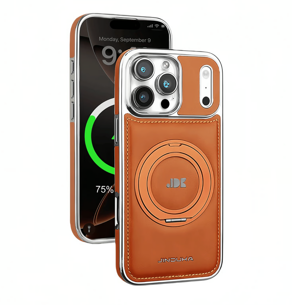 Capa elegante em couro com suporte de anel MagSafe