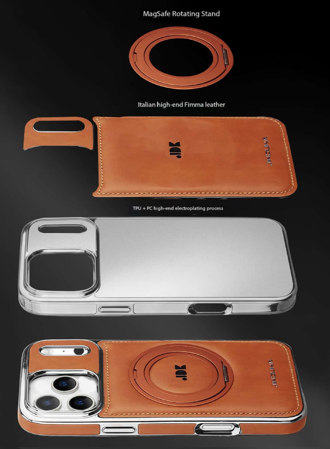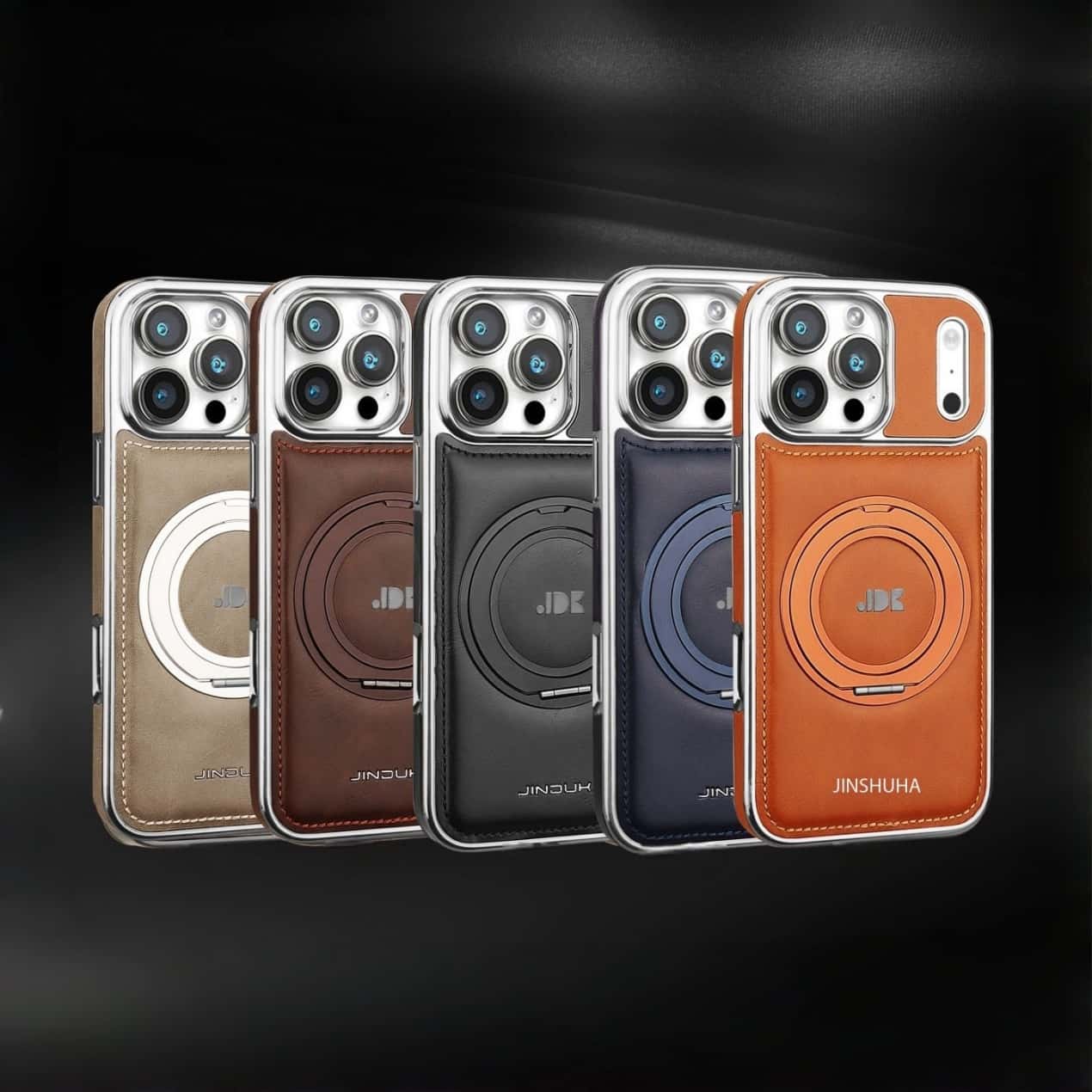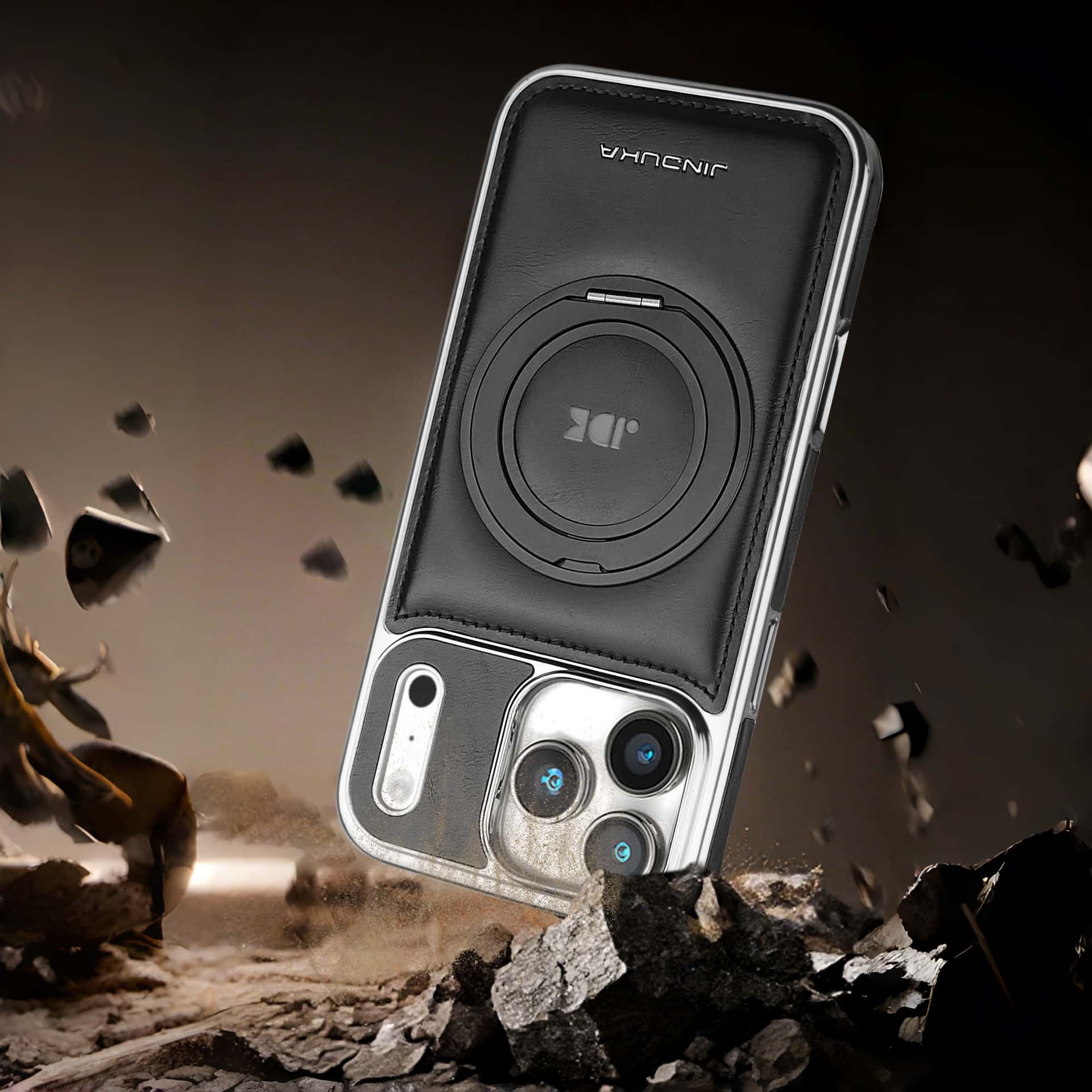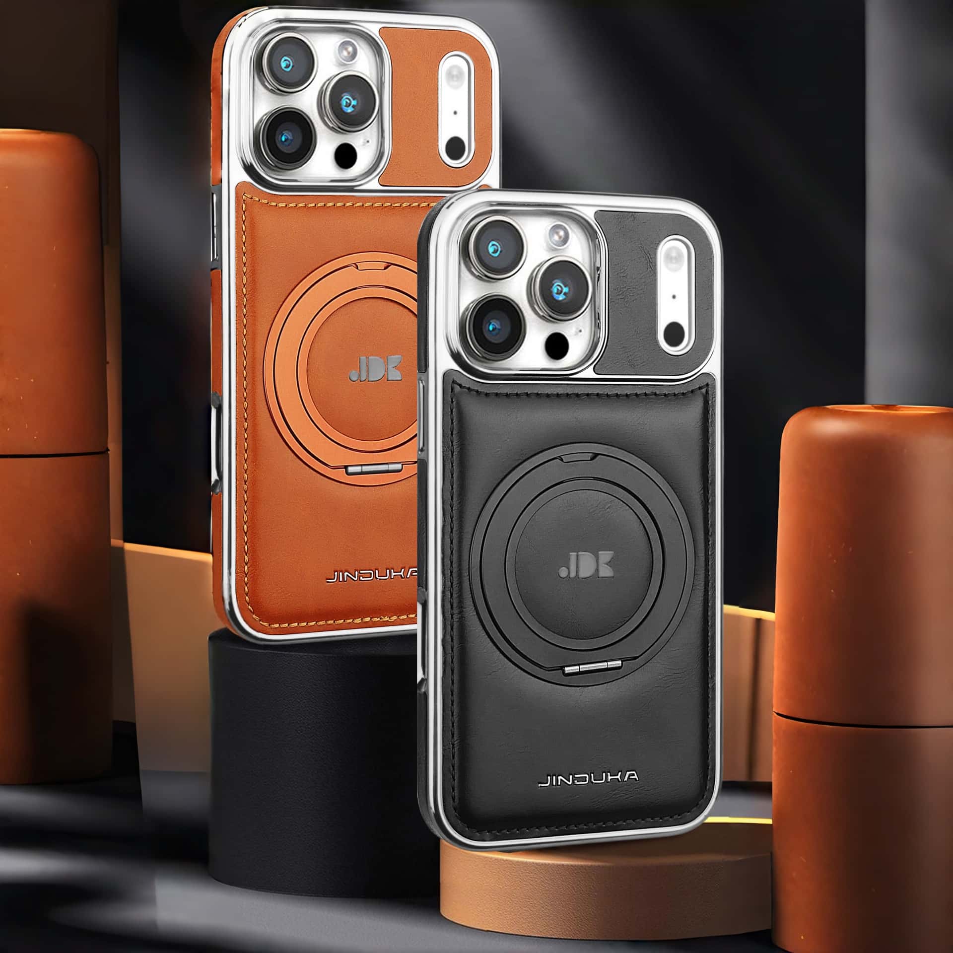 Capa elegante em couro com suporte de anel MagSafe