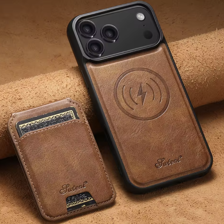 Capa de luxo com carteira em couro - Linha iPhone 17